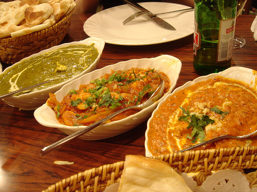 These dishes are cooked in a special clay oven called the tandoor. They are all dry dishes and are coated in spices, herbs and a special marinade. Served with mint sauce and salad.